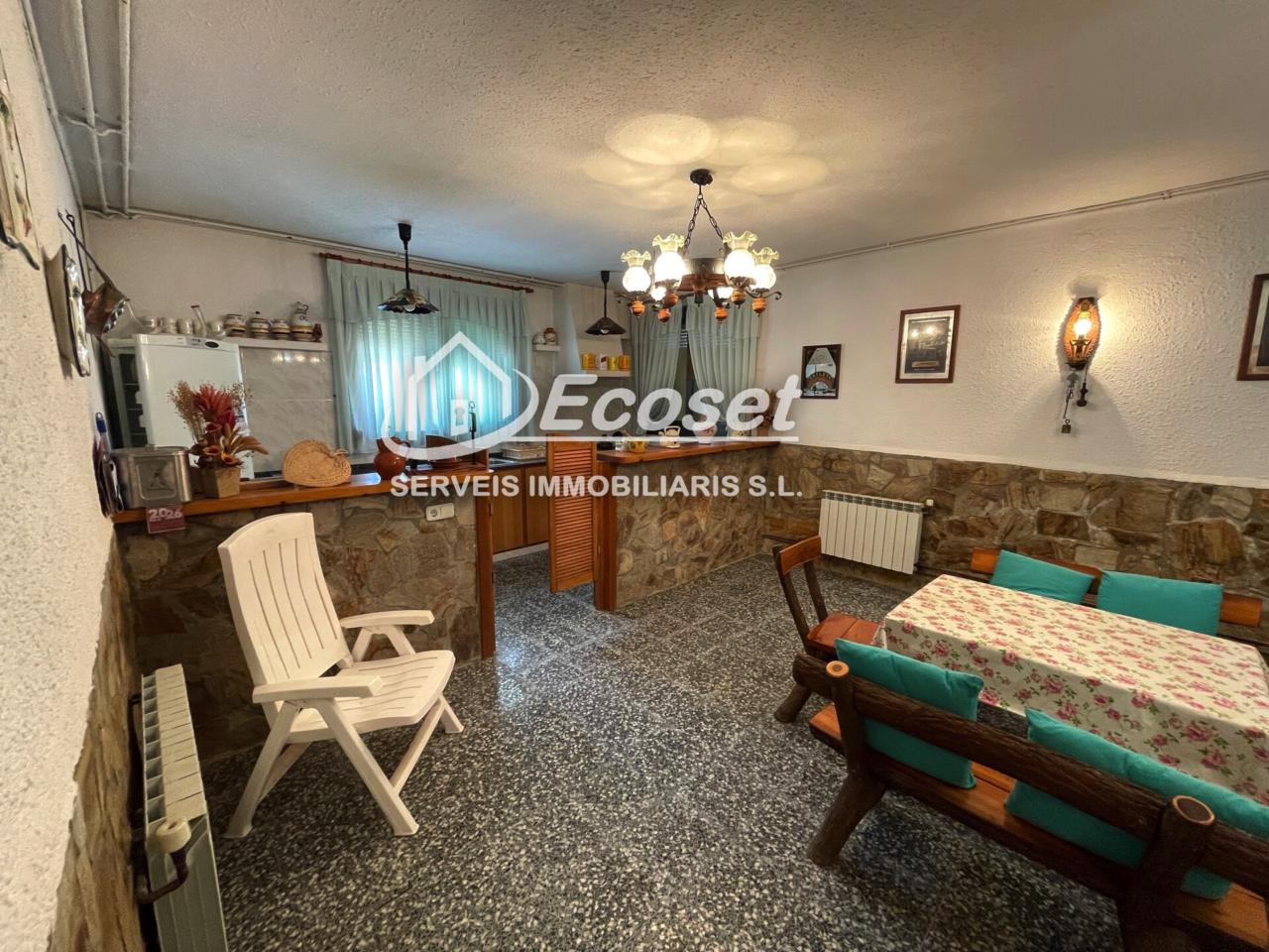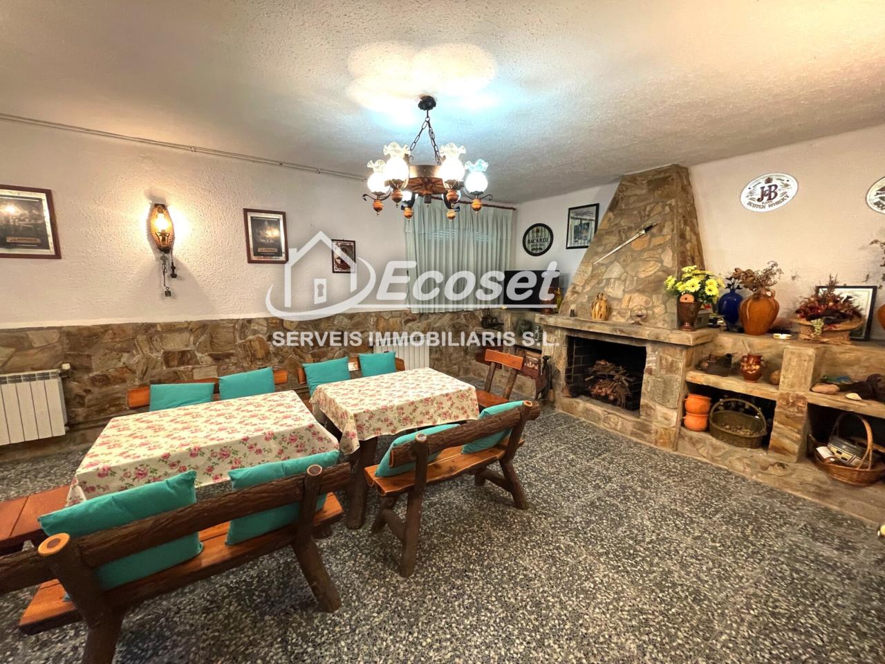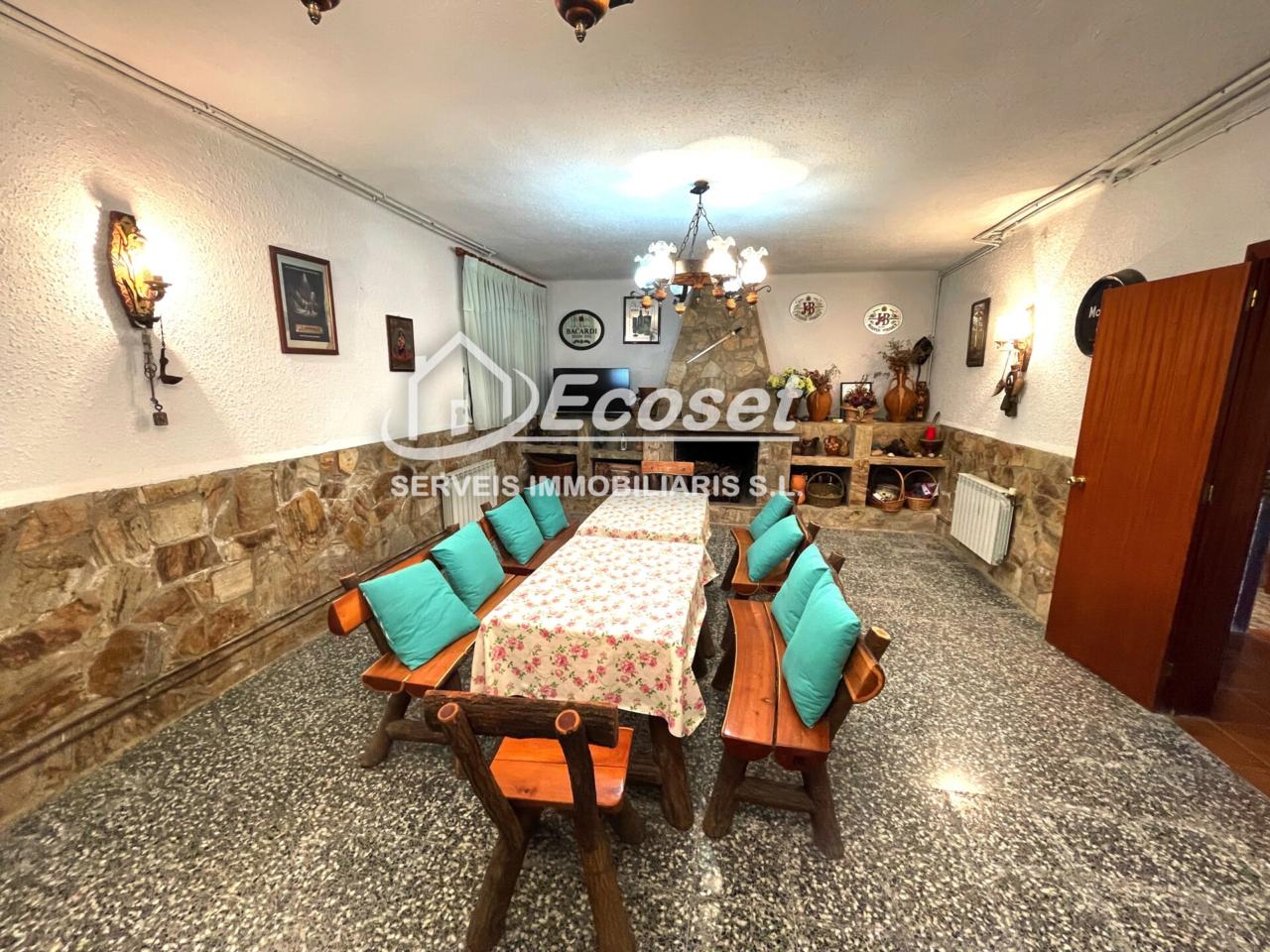 La planta baja dispone de un amplio garaje con capacidad para tres vehículos, un acogedor comedor con chimenea y una cocina de verano de estilo rústico, perfecta para reuniones familiares y celebraciones.
