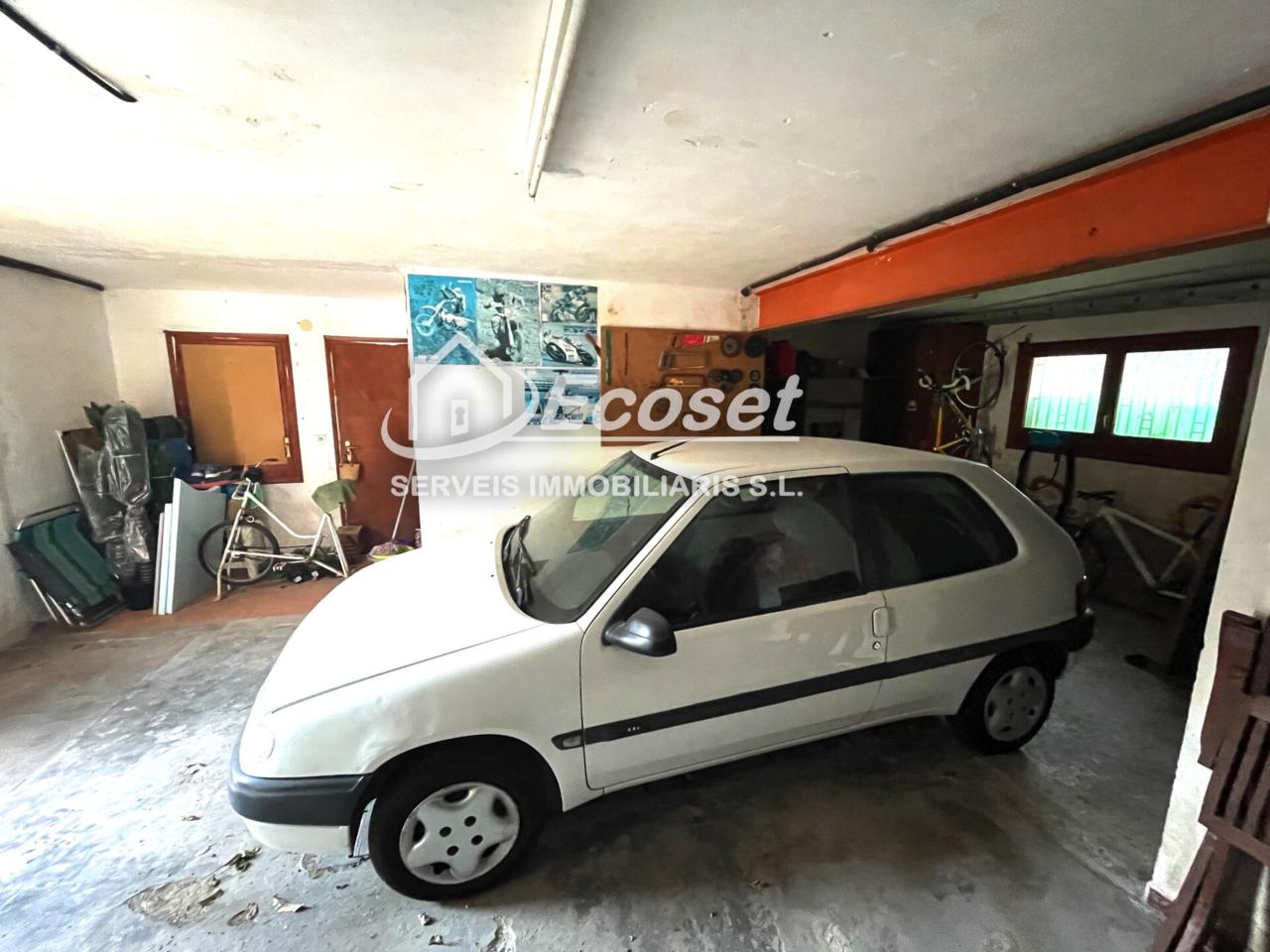 La vivienda se distribuye en dos plantas de 80 m² cada una. En la planta baja encontramos un amplio garaje y zona de almacén, además de un segundo garaje independiente en el jardín de aproximadamente 40 m², perfecto como espacio adicional o taller.